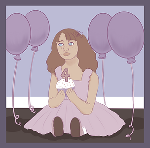 Creating an acrylic piece to show a birthday as the first prompt last year, this painting became one of my characters. There were some things to change such as her hair and the lighting.